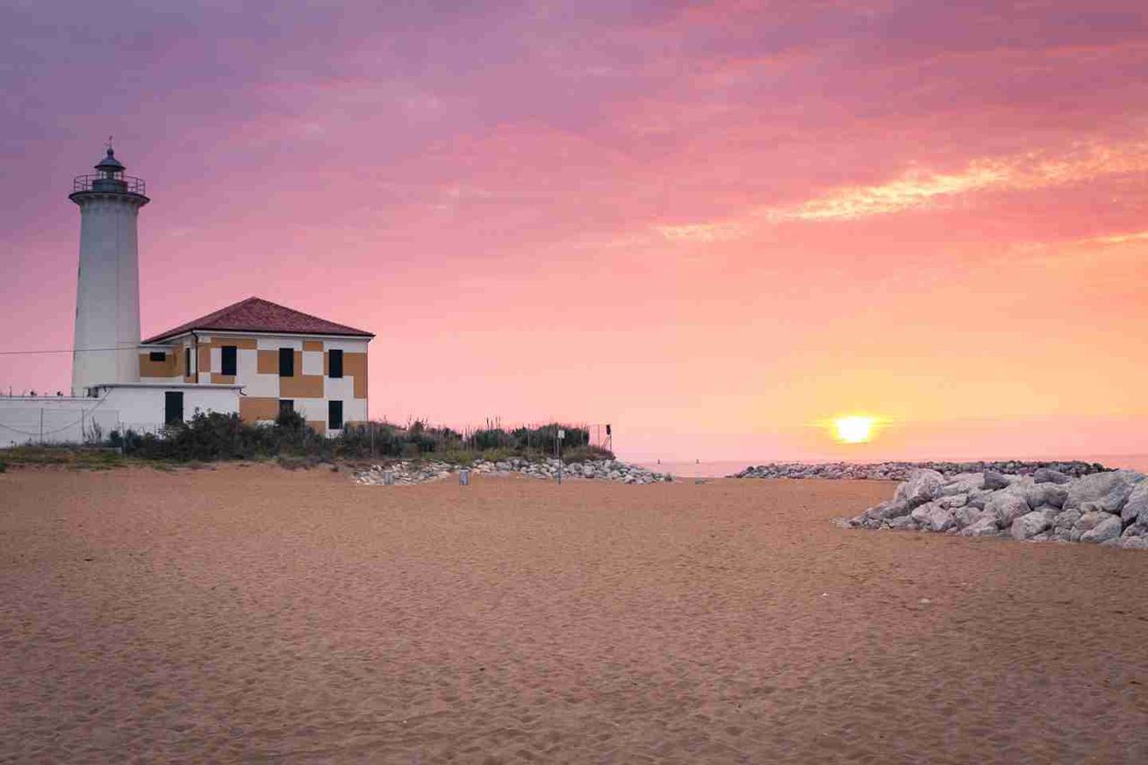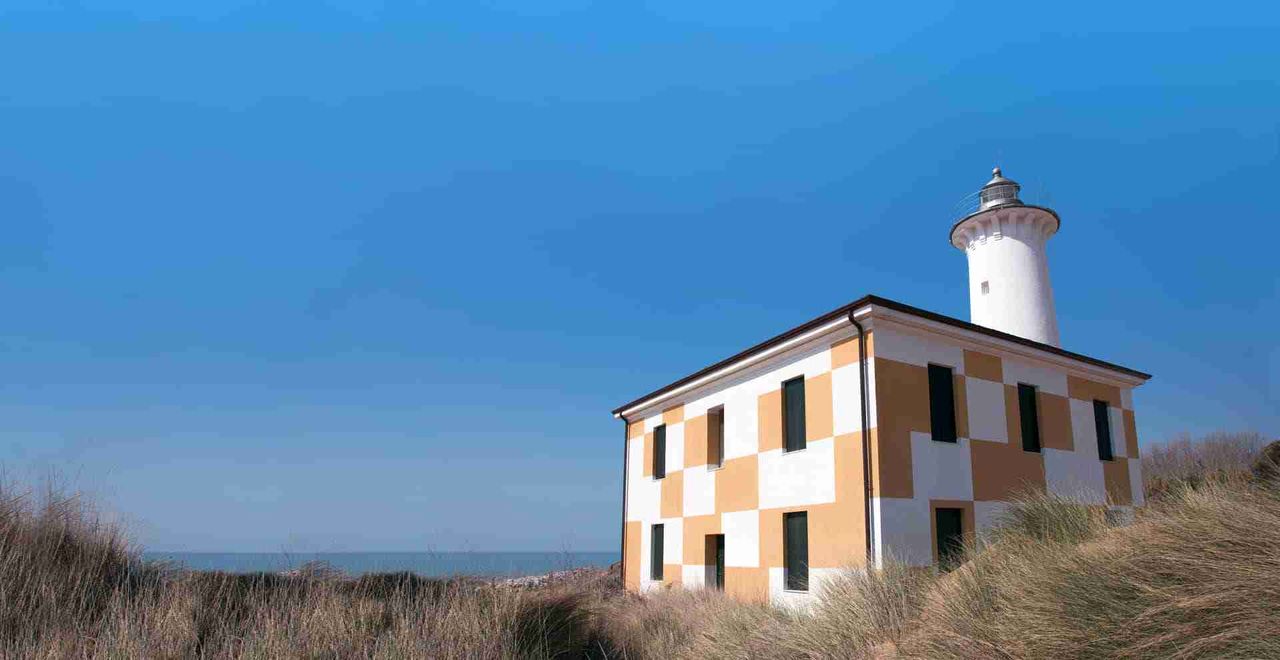 Solitario, alle foci del Tagliamento c’è il vecchio faro di Bibione, ormai disabitato ma ancora attivo come elemento di segnalazione per i naviganti. Costruito a inizio ‘900, è un po’ il simbolo di quest’area così silenziosa, dedicata a chi vuole raccogliere conchiglie, pescare, passeggiare con il proprio cane per vivere un’emozione e respirare a pieni polmoni e cogliere a pieno i benefici dell’aria salmastra.
