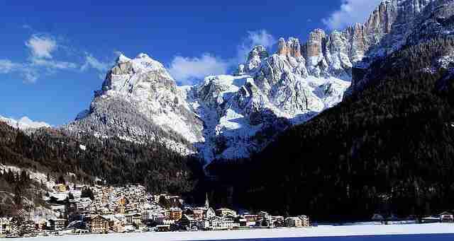 Il pittoresco paesino di Alleghe, sulle sue rive, offre tutto il necessario, dagli alloggi ai noleggi.