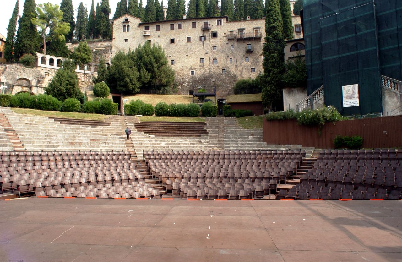 Il complesso teatrale è tra i più estesi edifici per spettacoli di età romana sorti in Italia, inserito in un suggestivo ambiente naturale tra la collina e il fiume Adige. Costruito all’inizio del I sec. d.C. rimase sepolto per molti secoli al di sotto delle strutture edilizie che via via sono sorte al di sopra dei suoi ruderi. Del teatro restano oggi i resti dell’edificio scenico, dell’orchestra, della cavea, di due ordini di gallerie e di 3 terrazze di raccordo con la sommità del colle. E' sede del Festival shakespeariano, annuale e prestigiosa stagione teatrale.
