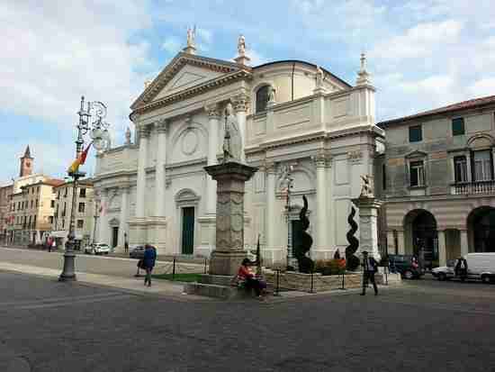 Nel cuore dell’abitato, un sistema di spazi contigui: piazza Libertà, con la loggia del Comune e il grande orologio; il piazzotto Monte Vecchio, scenografia raccolta con case affrescate; piazza Garibaldi, all’ombra della torre civica. Sul fiume, il ponte Vecchio, rifatto più volte nei secoli, ma dal Cinquecento a oggi sempre nella struttura lignea ideata da Andrea Palladio.