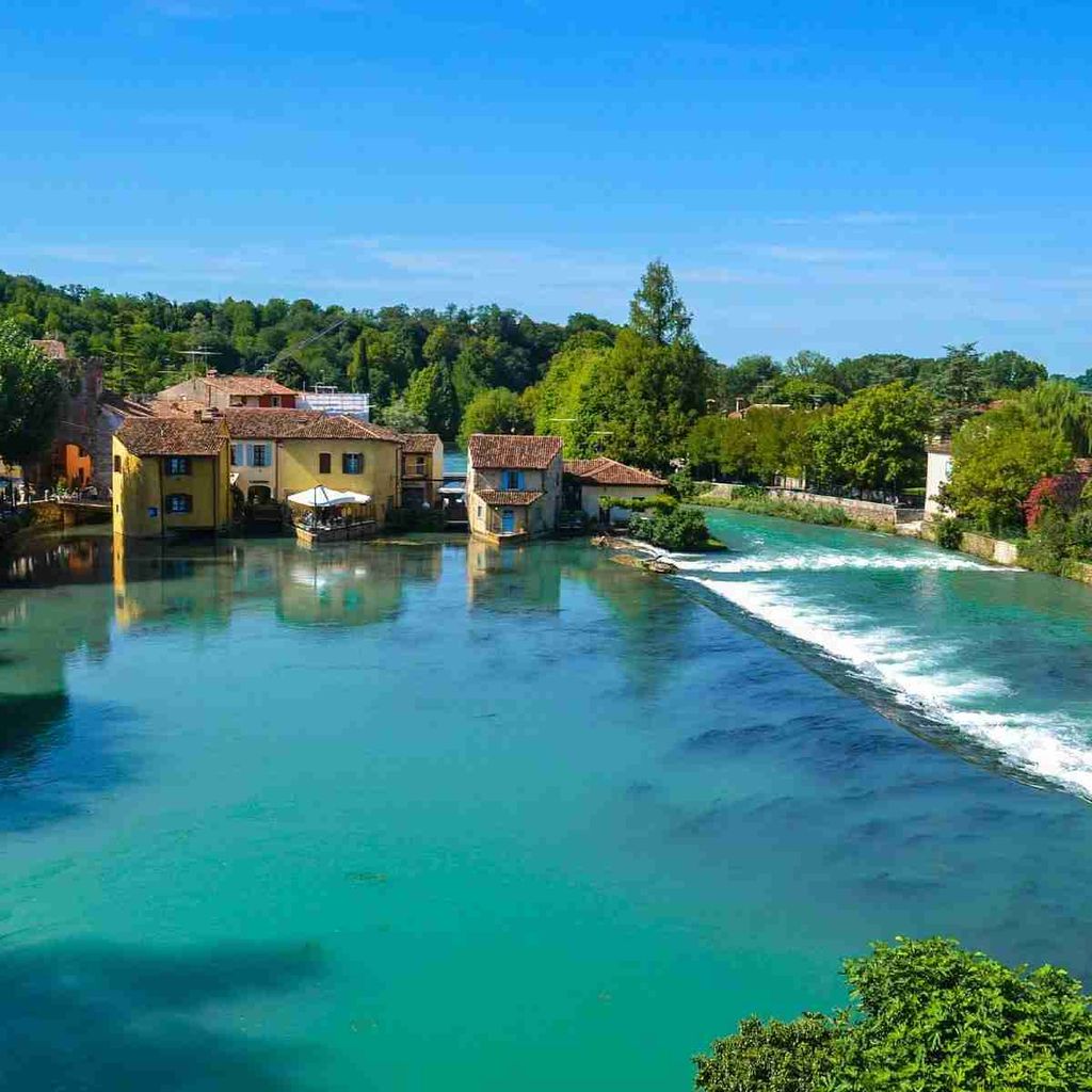 Borghetto è una frazione di Valeggio sul Mincio (VR) ed è inserito tra i Borghi più belli d’Italia. Il piccolo villaggio si è sviluppato intorno al 1400 lungo il fiume Mincio, attorno ad una serie di mulini ad acqua. Tutt’ora il centro storico conserva l’aspetto di un borgo medievale, grazie al campanile, alle storiche ruote dei mulini, un tempo utilizzati per la molitura del frumento e dei cereali, e al ponte Visconteo o ponte Lungo. Il ponte, lungo 650 metri e largo 25 metri, è parte di una diga fortificata costruita nel 1393 per volere di Gian Galeazzo Visconti, duca di Milano.