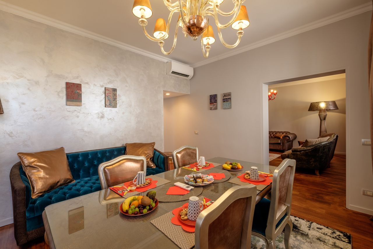 L'appartamento si compone di due camere da letto con letto matrimoniale, due bagni, un ampio salone, un'elegante sala da pranzo ed una cucina dotata di tutte le attrezzature (inclusa la lavastoviglie).