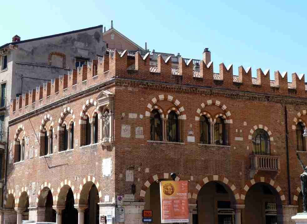 Imponente ed elegante edificio medioevale situato nel cuore della città. Costruito dalla signoria degli Scaligeri come luogo in cui le corporazioni delle arti e dei mestieri potessero incontrarsi per commerciare e discutere i vari aspetti della vita economica della città. Presenta un elegante portico in mattoni rossi retto da colonne e pilastri, sormontato da ampie bifore e merlatura ghibellina a forma di rondine. In una nicchia è presente una seicentesca Madonna con bambino di Girolamo Campagna.