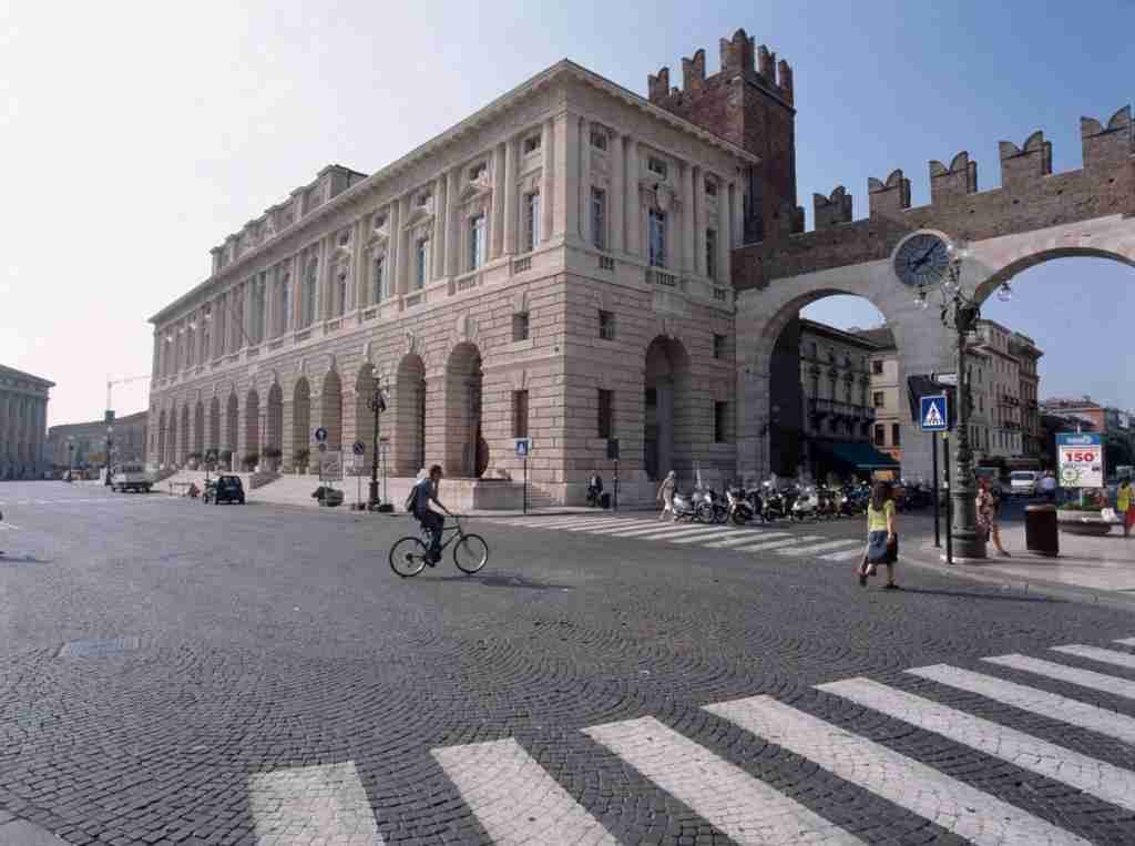 È un monumentale palazzo con un vasto portico pensato come edificio militare e usato per le esercitazioni a cavallo. Iniziato nel 1610, i lavori vennero completati intorno alla metà del XIX secolo. Disposto su due piani, quello inferiore è a bugnato (molte pietre provengono dall’Arena) e presenta un portico a tredici arcate, mentre il piano nobile è ritmato da finestroni con frontespizi triangolari e curvilinei alternati.