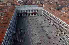 Piazza San Marco è l'unico spazio a Venezia ad assumere il nome di piazza. Ha forma trapezoidale: è lunga 175m e larga 72m di fronte alla Basilica di San Marco e 57m sul lato opposto, in prossimità dell'ingresso del museo Correr. Dal centro di piazza San Marco si possono ammirare i palazzi più importanti per la vita politica e religiosa veneziana di cui è fulcro la Basilica di San Marco. Guardando la Basilica a destra, si scorgono il maestoso Palazzo Ducale, la piazzetta San Marco nella quale si ergono i due grossi monoliti che sorreggono le statue di San Marco nella sua veste simbolica di leone alato e San Teodoro che trafigge il drago; seguono la Zecca, costruita da Sansovino, la biblioteca Marciana, pensata per ospitare alcuni manoscritti donati alla città nel 1468 dal cardinale greco Basilio Bessarione, ancora oggi consultabili, l’imponente campanile di San Marco, con la loggia anch’essa costruita da Sansovino.