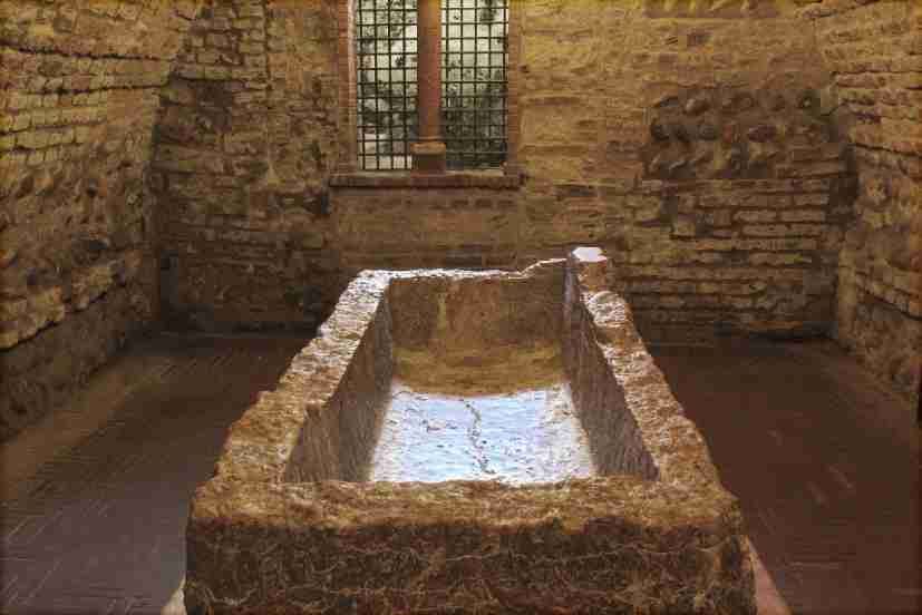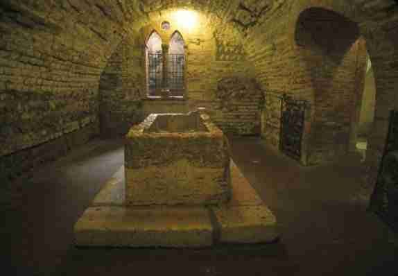 Situato nella cripta sotterranea, attigua al chiostro del duecentesco complesso conventuale di San Francesco al Corso, il sarcofago scoperchiato è realizzato in marmo rosso e, secondo la recente tradizione, ha ospitato le spoglie di Giulietta.