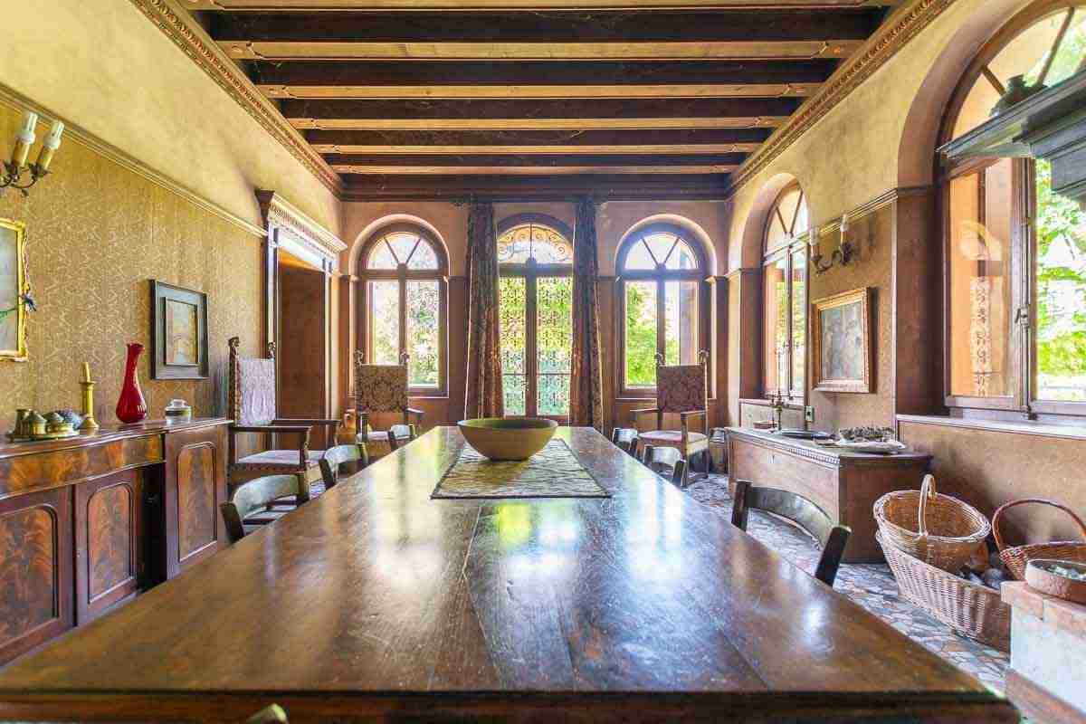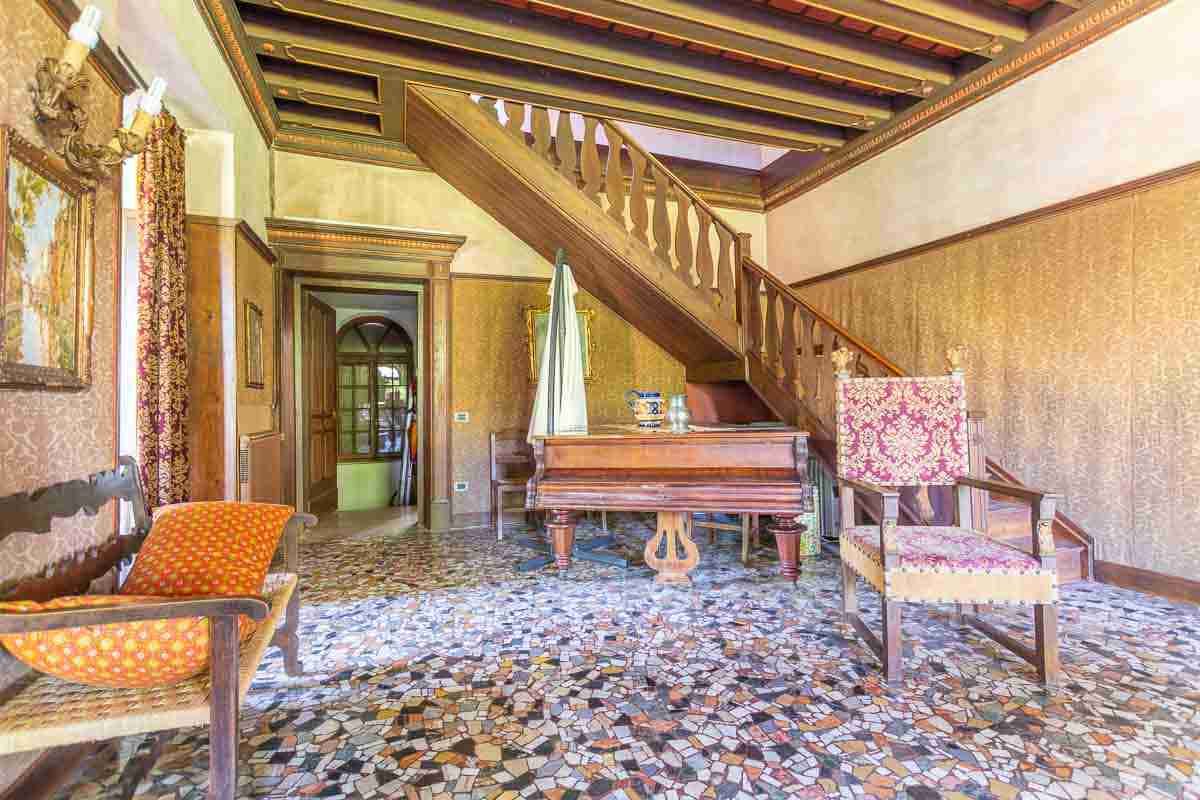 Costruita negli anni 20 da mio nonno, titolare di un negozio di stoffe da arredamento a Venezia, ricca di arazzi e tessuti di arredamento, Grandi spazi interni.