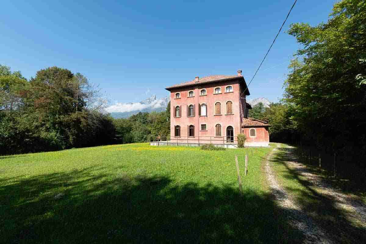 Villa isolata, a qualche centinaio di metri dal paese di Sedico. Su tre piani, per un totale di circa 650 mq, circondata da un grande prato e da boschi.